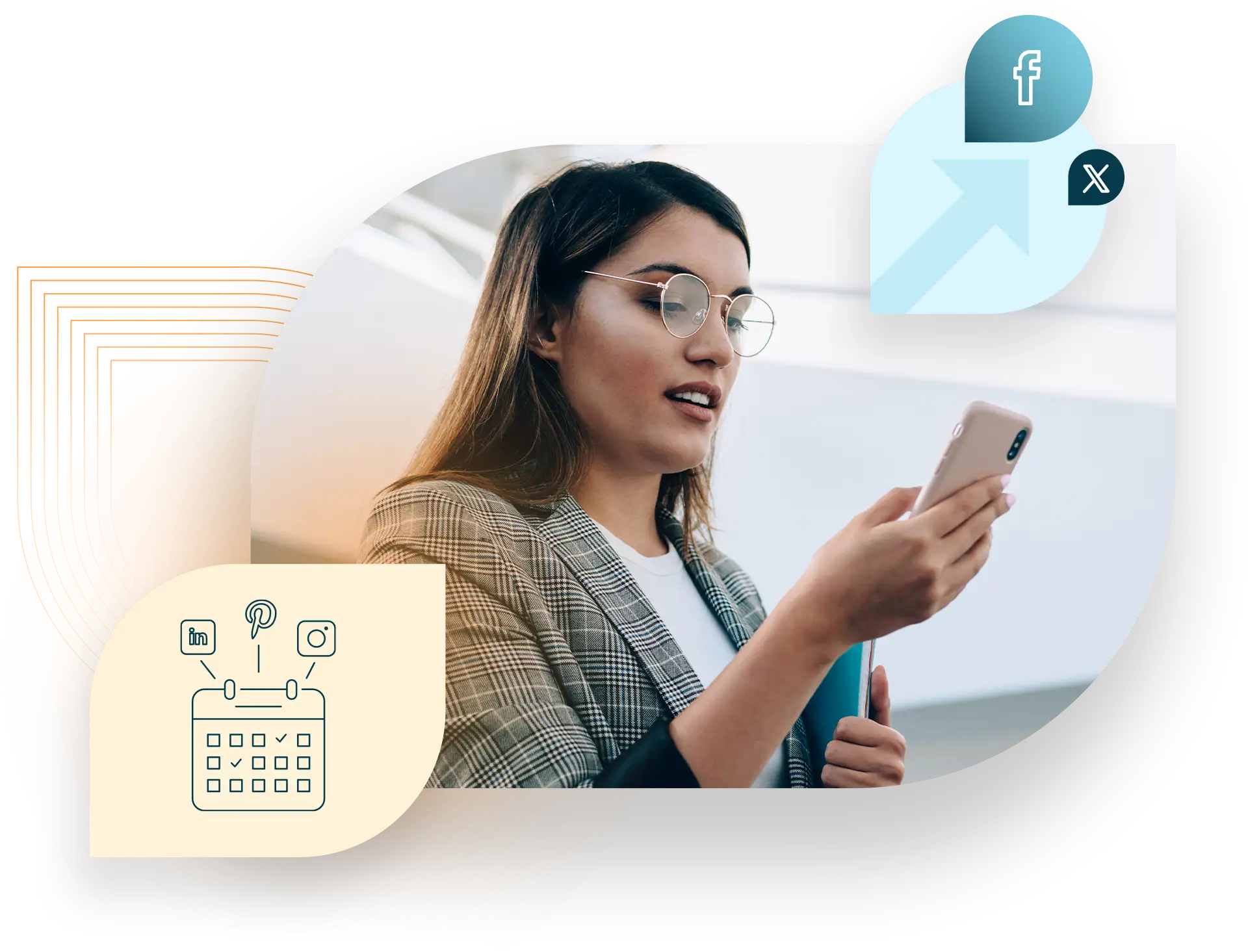 Post to multiple social channels in one simple step; Facebook, Instagram, X (Twitter), LinkedIn, Pinterest, WordPress blog.