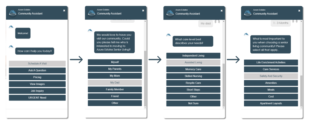 ActiveDEMAND’s out-of-the-box Website Chat Virtual Assistant templates are a significant time-saver for senior living providers. These templates are designed to be quickly deployed, reducing the setup time, and allowing providers to focus more on meeting the needs of their prospects and clients. The ease of implementation and the ability to customize these templates to suit specific needs make ActiveDEMAND a more practical choice for senior living facilities, where resources are often limited, and efficiency is key.